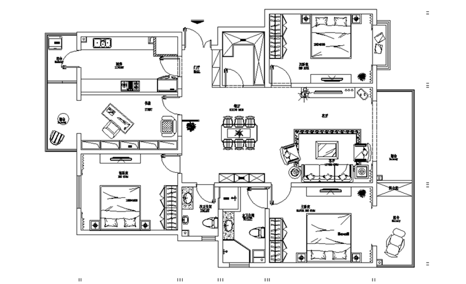 主臥:主臥一溫馨舒適為主,以床頭背景墻和吊頂的部分造型突出房間里的設計感,又不會使人覺得繁雜,擁擠。