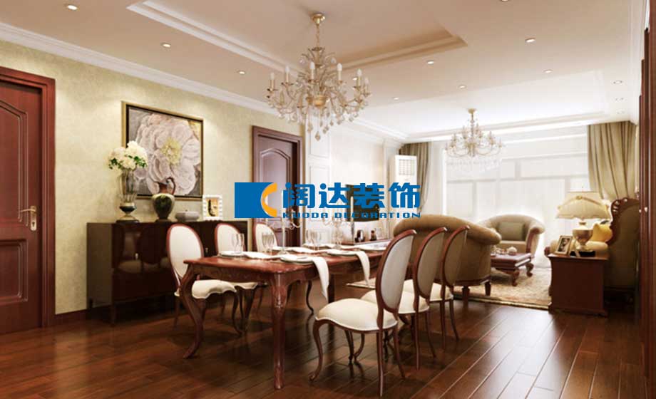 整套房屋的風格為美式簡約,居室色彩主調為溫和色。家具為古典彎腿式,家具、門、窗漆成白色。擅用各種花飾、豐富的木線變化、富麗的窗簾帷幄是西式傳統室內裝飾的固定模式,空間環境多表現出華美、富麗、浪漫的氣氛。