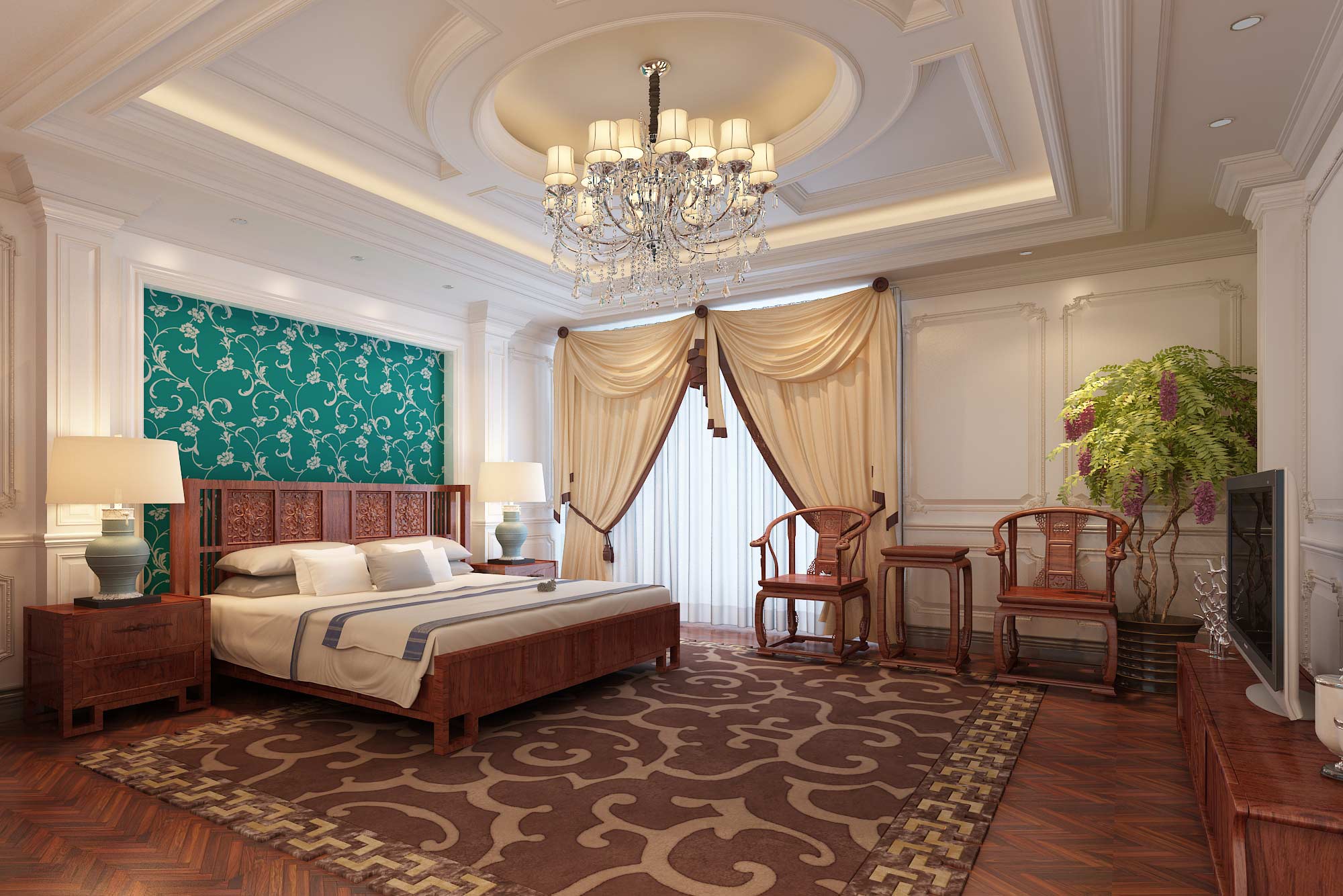 本案設計風格是新古典和中式風格的結合,意在營造典雅,自然,純凈,奢適的自然空間。整個空間是中西方文化的碰撞,古典和現代的并存。