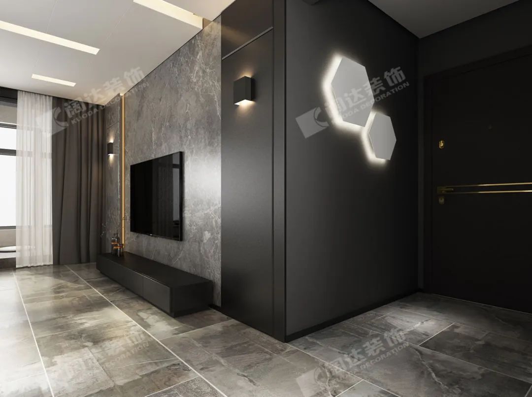 客廳與陽臺貫通,增加了空間的開闊感,用多種燈光的配比渲染光影,使得整個空間更加簡潔干凈。