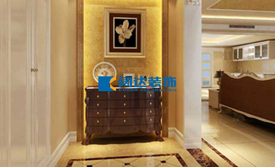 通過與業主溝通,了解家庭成員夫妻和兒子居住和使用需求,結合房屋本身的結構特點,入戶門正對客廳,客廳私密性不好,門廳要大滿足主人實用功能,還要體現玄關功能.客廳與餐廳空間沒有有效劃分,另外廚房中西廚的處理要考慮實用性和裝飾性。"門廳做了整體衣帽柜,滿足實用功能,拆除部分隔墻,增大了客廳及門廳間的通道,使整個空間更加開闊。造型啞口的設計,