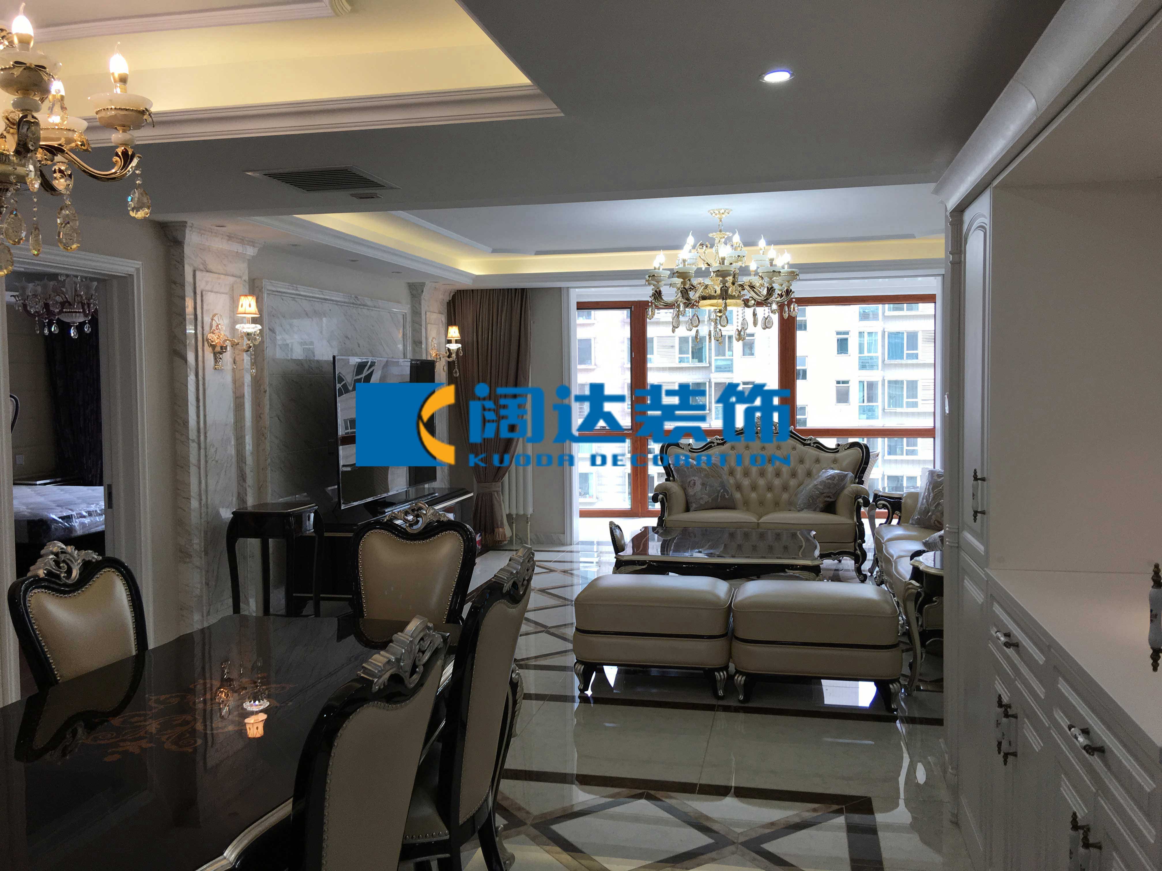 本案例采用歐式設計風格,通過整體色彩及家具的搭配營造自然、舒適、高雅的生活氛圍,此設計案例也在相當程度上表現出其居住者的品位、愛好和生活價值觀。